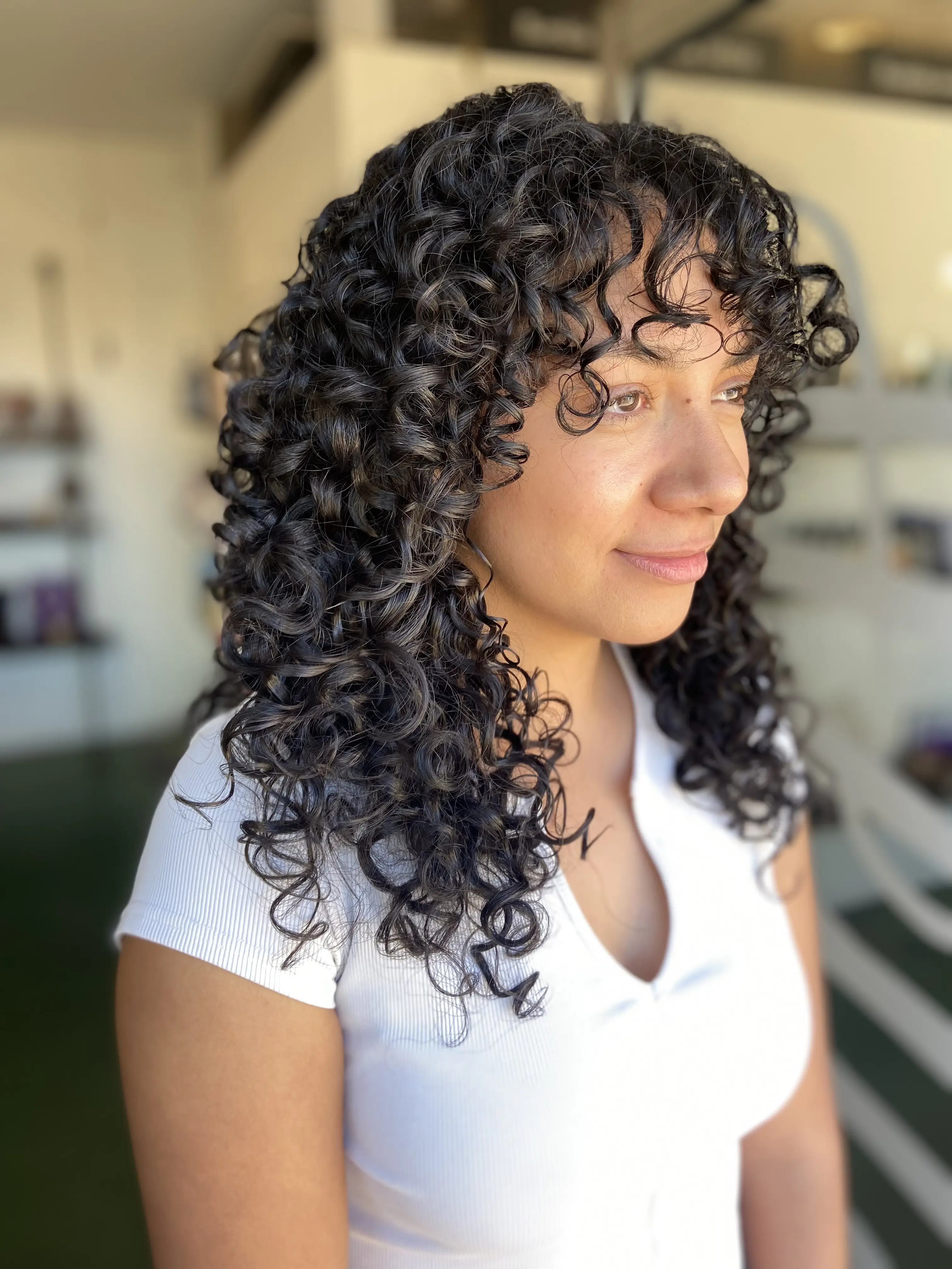 Ideal if: You’re looking to wear your hair curly full time. Getting a haircut that will balance your shape and works with how your curls naturally live and move. Includes: Consultation, dry haircut with each curl cut individually, relaxing scalp massage & shampoo, personalized diffused style.